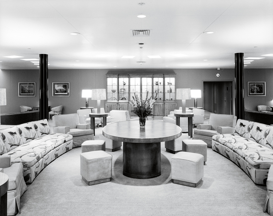 The contrast between the passenger interiors of the Independence and Constitution and those of competing European liners was profound. For example, the first-class lounge on the US liners did not look all that different from the average suburban living room, with low ceilings, neutral colors, and casual furniture—although the loaned objects from the Met lent a rarified touch. Even as early as the mid-nineteenth century, ocean liner decor had famously mimicked the palaces and grand houses of the European elite, and the shift to modernism had not dulled the taste for luxury at sea.