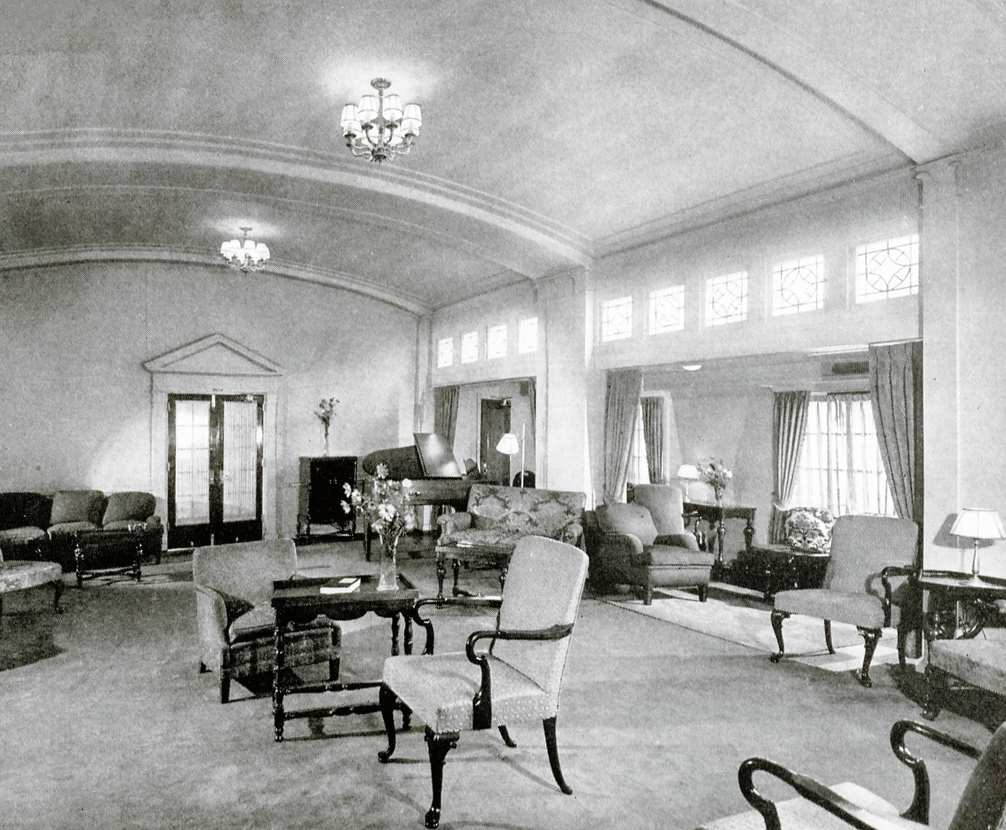 This preference for melding tradition with a more approachable, simplified school of modernism began to find a unique outlet within US shipbuilding during the 1930s. At the beginning of the decade, AEL was one of the earliest proponents of this approach. The design of their passenger quarters rejected the excess of Art Deco found elsewhere at sea. Instead, the company chose a style they described as “home-like and colonial”—what passengers would expect to find in a suburban home or local country club, with reproduction Colonial Revival–style paneling and reproduction furniture (fig. 27). Notably, photographs of passenger spaces do not show art of any sort.